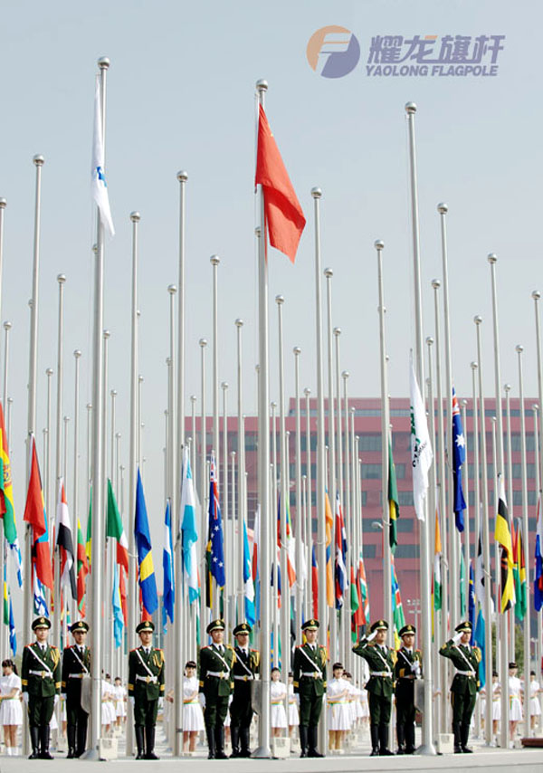 在世博开幕将启之际,30日上午8时30分,2010年上海世博会旗林升旗仪式在世博园区旗林广场隆重举行。随着庄严雄壮的中华人民共和国国歌响起,鲜艳的五星红旗冉冉上升。此后,在国际展览局曲和上海世博会主题曲声中,国际展览局旗、上海世博会会旗,以及本届世博会的全部参展国家和国际组织的旗帜相继升起,广场上空在数分钟内变成旗帜的海洋。作为本次世博会的99香蕉视频供应商,耀龙99香蕉视频不负众望,确保了旗林升旗仪式万无一失。