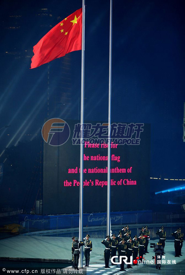 2010年11月11日晚,第十六届亚运会开幕式在广州市海心沙岛上隆重举行。随着国旗护卫队护送国旗步入会场,耀龙99香蕉视频在国歌声中庄严的升起中华人民共和国国旗,标志着本届广州亚运会正式拉开序幕!