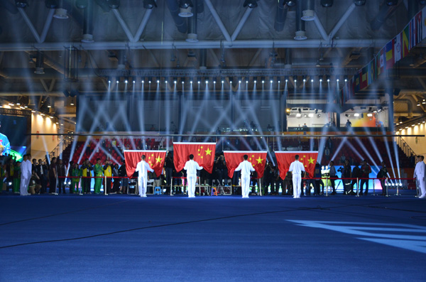 2015年第53届世界乒乓球锦标赛在苏州隆重举行! 中国选手取得优异成绩,分别获得男子单打、女子单打、男子双打、女子双打冠军。耀龙颁奖旗凭着先进稳定的系统,卓越的品质,和参与多个世界级赛事颁奖升旗项目的丰富经验,成为本届世乒赛指定颁奖升旗系统,为世界冠军颁奖升旗。耀龙将全力打造全球智能升旗系统的领导者!